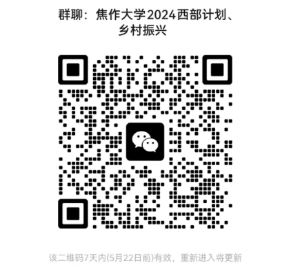 球王会官网入口志愿服务西部计划和乡村振兴计划项目办设在校团委。有意向报名的同学可扫描后附二维码进入“球王会官网入口2024西部计划、乡村振兴”微信群。如有其它疑问,请咨询校团委西部计划负责人。