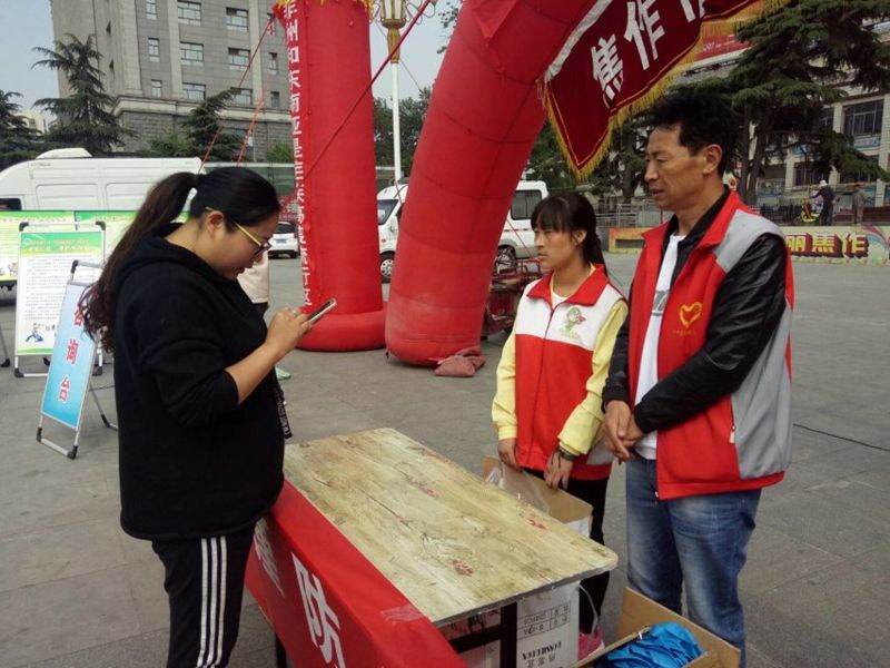 到达东方红广场后志愿者们便各自有序的忙了起来,大家帮助医务人员摆好桌子,摆放宣传展板,等待前来咨询的人们。前来咨询的人络绎不绝,志愿者们也是为他们积极的讲解。还为前来参加了解疾病防治的每个人送了小礼品,能为人们对疾病的预防多做些宣传,让人们了解疾病预防的重要性,志愿者们脸上也洋溢着笑容。