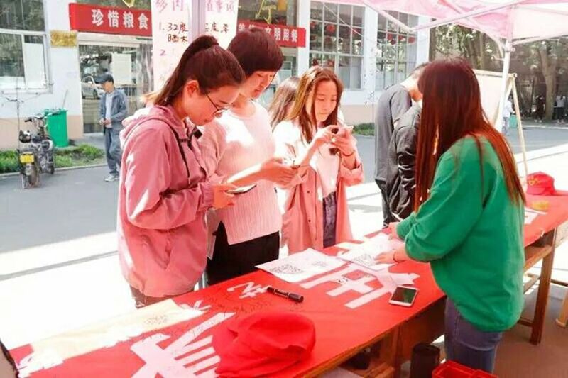 此次活动通过扫描二维码、签名、转动转盘的方式进行领取盆栽或者花卉种子,志愿者们还向同学们讲解了绿植种植的方法及注意事项,同学们积极参与,活动现场气氛十分热烈。