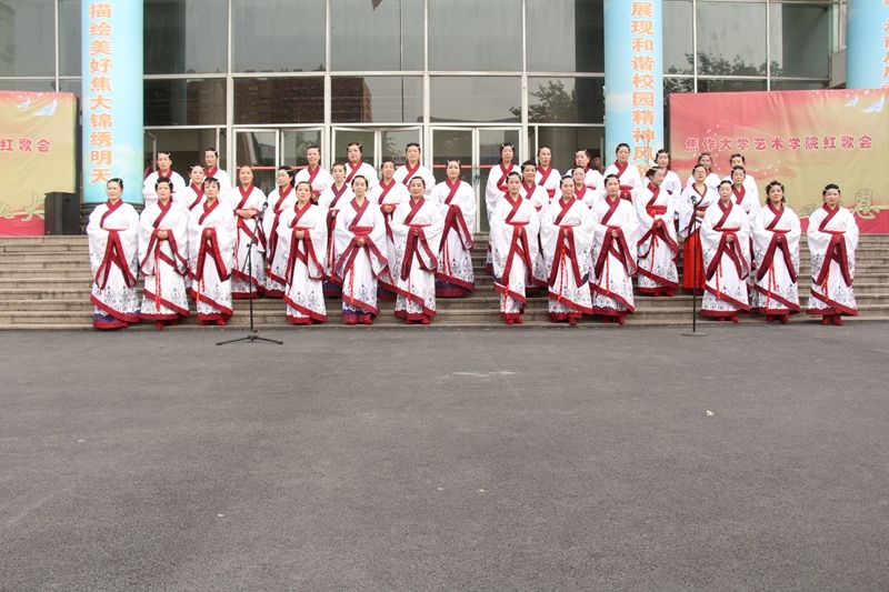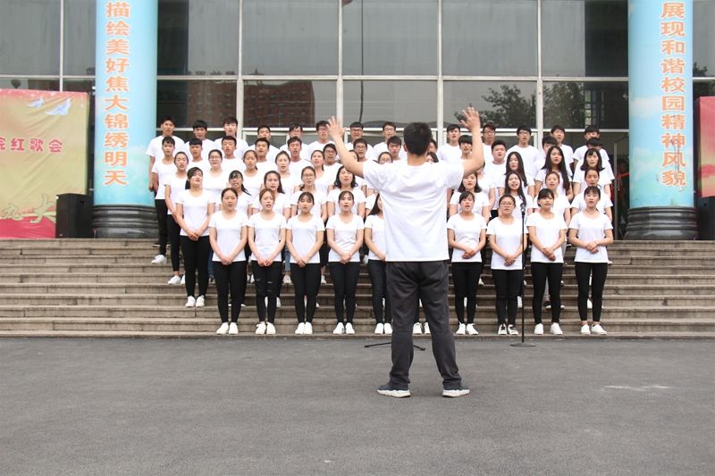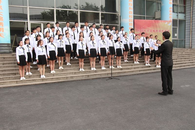 由艺术学院15、16级全体学生参加的红歌合唱比赛在主持人的宣布下正式开始,12个方队依次进行演唱,激情的红歌回荡在整个校园,与飘飘的五星红旗相呼应。12个方队演唱完,我院有幸邀请到焦作美之声合唱团做为我们此次活动的特别嘉宾,为我们全院师生演唱《关雎》,高雅文化引进校园,不仅让我们的同学们开阔眼界,更提高了我们同学们文化修养。