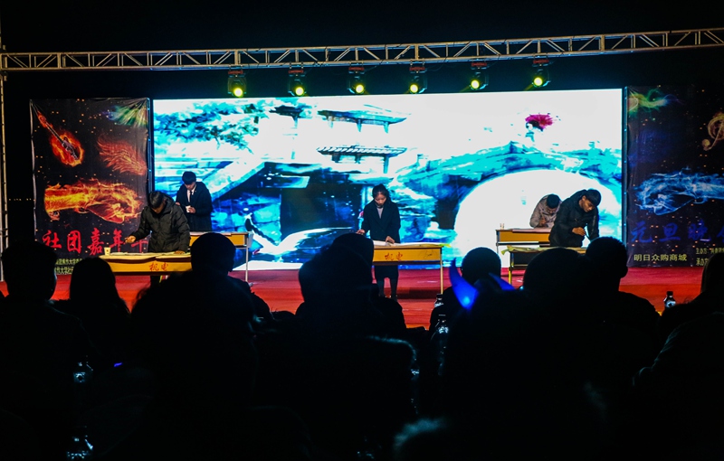 晚上6:30,社团嘉年华迎元旦文艺晚会拉开序幕。为了展现自我,各社团带来了精品节目。动感的街舞,嘹亮的歌曲,诙谐幽默的小品、相声,文雅的书法表演,晚会节目形式多样、内容丰富,现场欢声笑语、掌声雷动。精彩的节目和热情的观众一次次把现场气氛推向高潮。