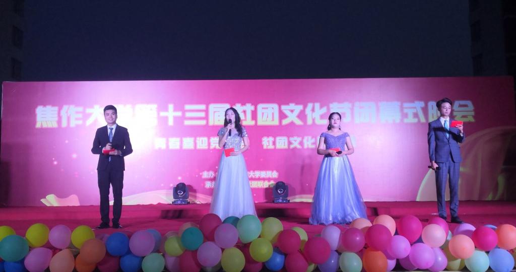 4月15日晚,由校团委主办、校社联承办的以“青春喜迎党代会 社团文化展风采”为主题的第十三届社团文化节闭幕式晚会在南校区和谐广场举行。
