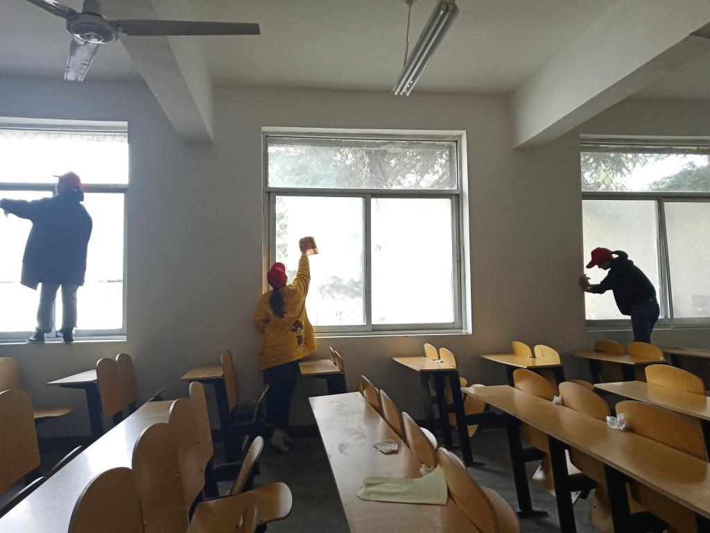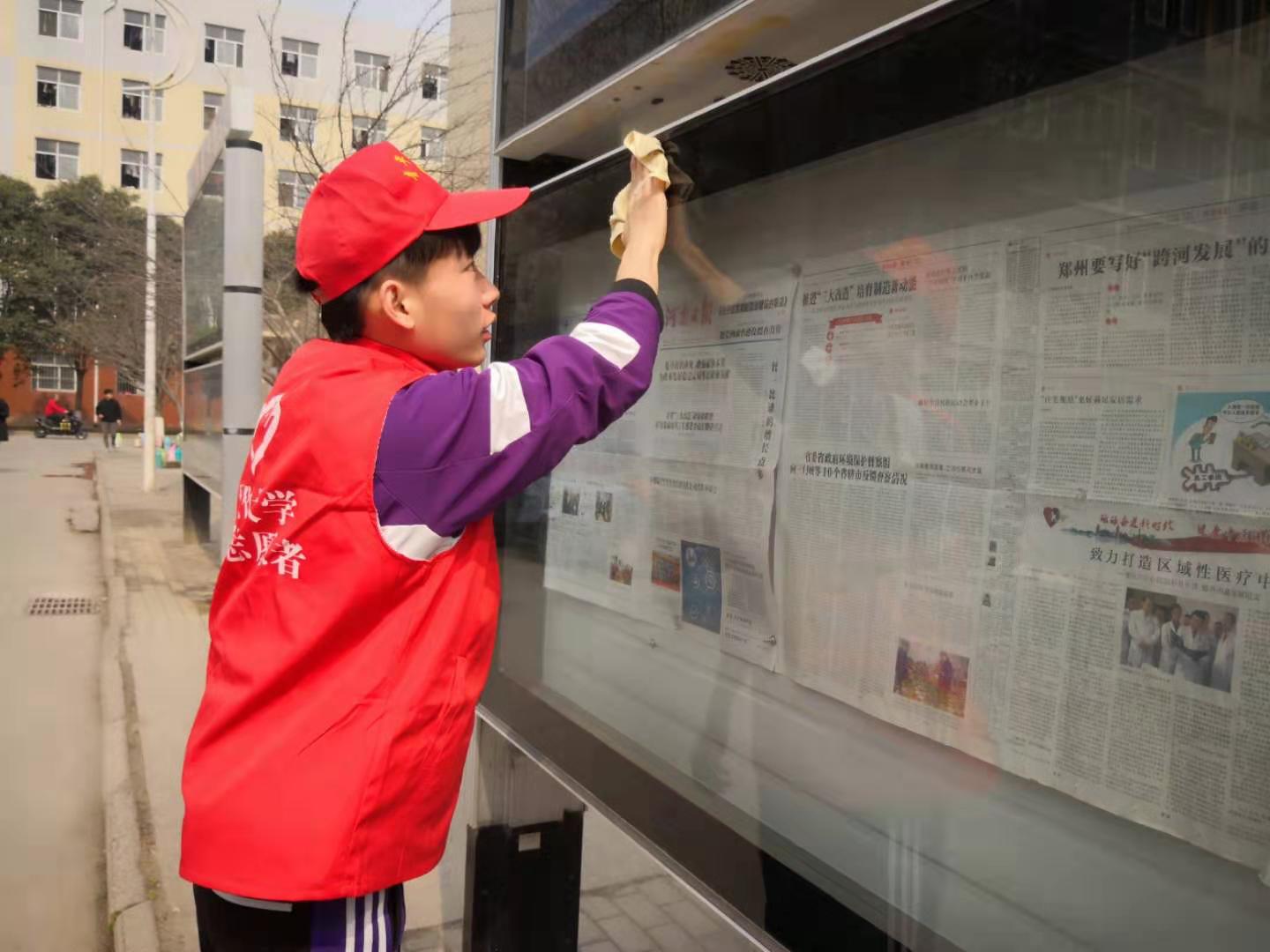 志愿者们的一顶顶小红帽如一团团火焰,温暖着焦大校园内的每一个人,散发着一股青春的气息。志愿者们打扫教室卫生,规整了校区内的自行车,清理了橱窗小广告,打扫了草坪、花坛、道路上的垃圾。经过一个半小时的辛勤劳动,校园内的操场干净了,零乱的自行车整齐了,墙壁上、橱窗内的“牛皮癣”小广告不见了。