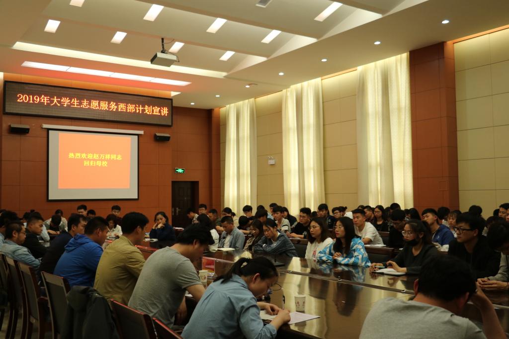 5月6日下午5点,球王会官网入口2019年大学生志愿服务西部计划宣讲会在行政楼201会议室举行,球王会官网入口机电工程学院2018届西部计划优秀志愿者赵万祥同志代表尉犁县团委作新疆专项宣讲。各学院团总支书记、青协会长、大三有意向参加西部计划的应届毕业生共计150余人参加宣讲会。会议由团委宣传部部长栗岩主持。