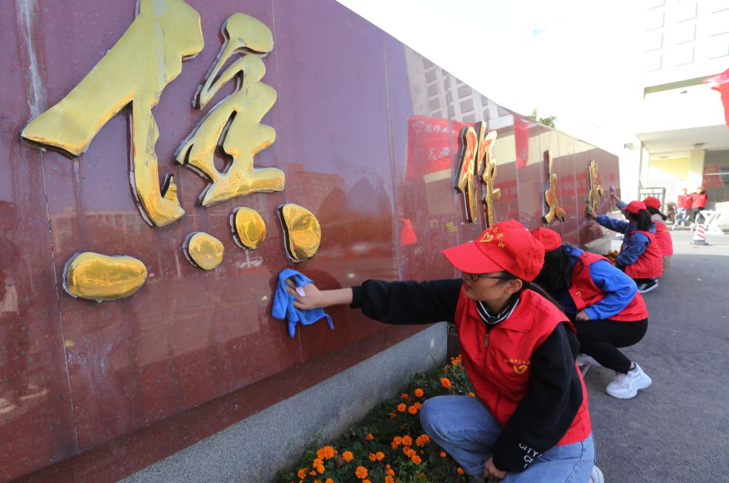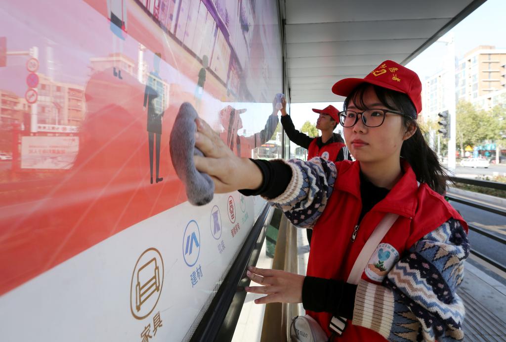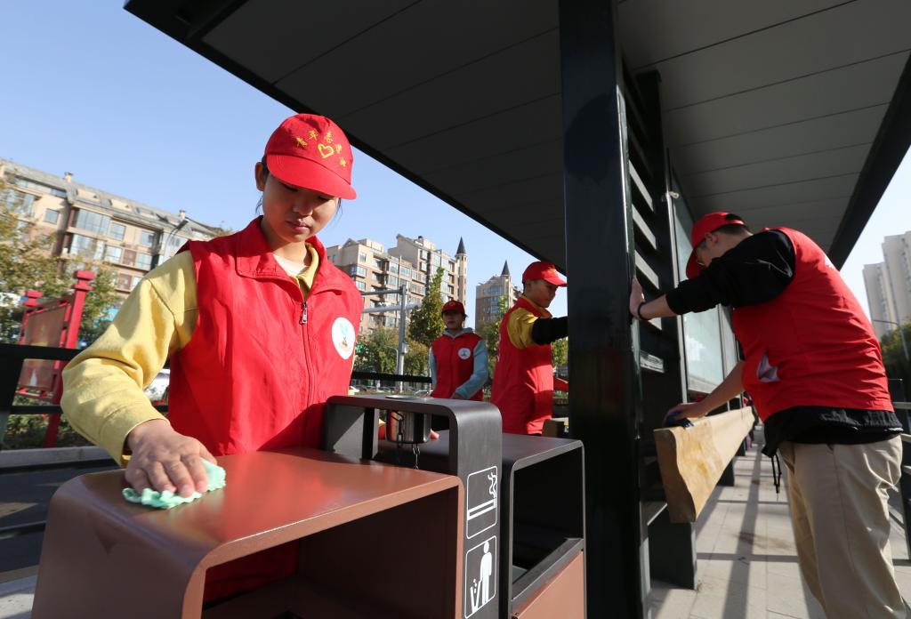 志愿者来到事先分配好卫生区域,大家分工明确,配合默契。活动现场,团旗和志愿者旗迎风飘扬,大家认真擦洗公交站牌橱窗、围栏、座椅,捡起草坪上的塑料垃圾,清扫马路上的树叶,由于风大,刚刚清扫干净的路面又落下树叶,大家又重新打扫。志愿者们发扬不怕苦、不怕累、任劳任怨的奉献精神,很多市民看到球王会官网入口志愿者的辛勤付出,纷纷表示称赞和肯定。