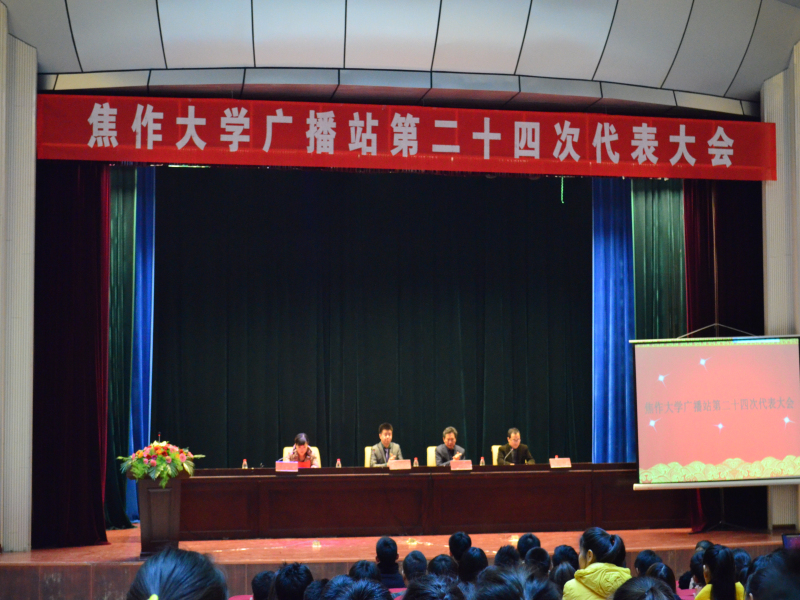 大会由冯岚岚老师主持,团委组织部部长梁超致开幕词。会上,焦书记发表了重要讲话,对广播站二十三届优秀工作人员提出表扬,并对新一届广播站干部提出要求。广播站第二十三届站长娄永亮做工作报告,总结了广播站一年来的工作情况,并对下一届广播站成员寄予厚望。大会还对广播站第二十三届优秀干部及优秀工作人员进行了表彰,并选举产生第二十四届广播站成员。