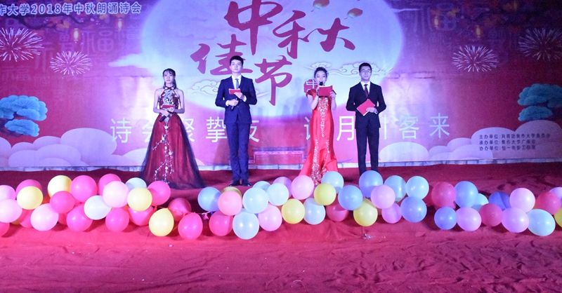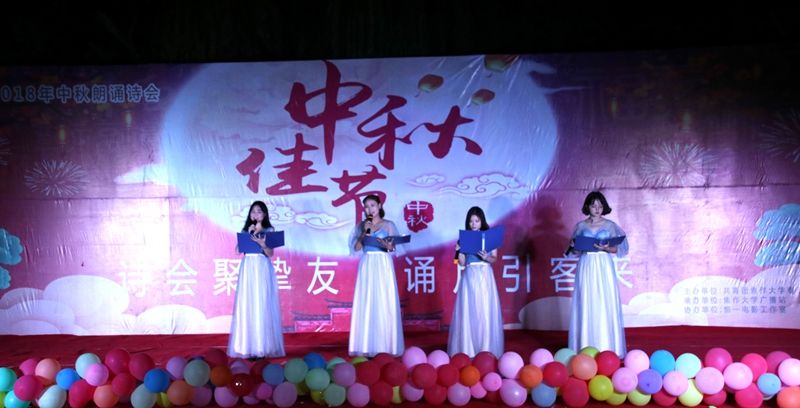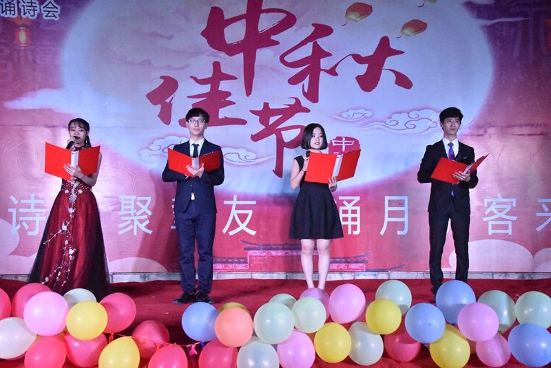 南北校区中秋诗会在《我们的节日》、《中秋的月》中拉开序幕,《中秋赋》、《春江花月夜》、《中秋的月亮》、《我们的节日》、《理想》、《金秋皓月》等一首首声情并茂的配乐诗歌散文让现场同学感受到了浓浓的烂漫诗情和中秋氛围。歌曲《月光》、舞蹈《明月几时有》、吉他弹唱《八月十五》、《但愿人长久》,同学们用欢快的歌声、热情的舞蹈迎接中秋佳节的到来。