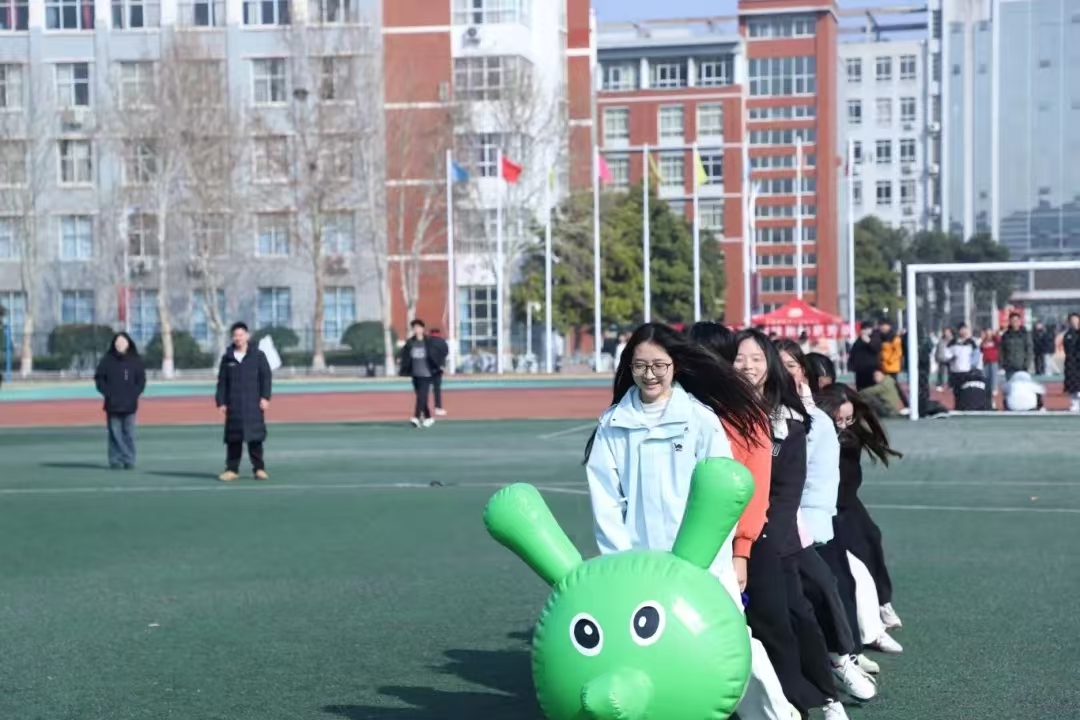 赛场上,阳光洒下,同学们个个摩拳擦掌,蓄势待发。随着比赛的开始,同学们迅速进入状态,团结协作,斗志昂扬。在毛毛虫竞速中,大家齐心协力,步伐一致,向着终点奋力冲刺;袋鼠跳接力赛里,选手们如灵动的袋鼠般跳跃前行,传递着胜利的希望;摸着石头过河项目,同学们小心翼翼却又坚定果断,脚下的每一步都考验着智慧与勇气;鼓击球挑战时,大家紧密配合,通过默契的配合让球在鼓面上欢快跳跃,奏响了一曲青春活力的交响乐章。同学们英姿飒爽的身影成为了校园里最美的风景,目光所及之处,皆是青春的风采。那飞扬的汗水,那拼搏的姿态,无不展现着青春的活力与激情。 经过激烈角逐,社团联合会以总分第一斩获团体冠军。