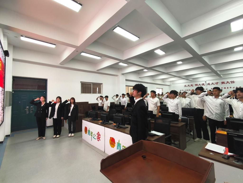 活动临近尾声,全体师生一同高唱《光荣啊,中国共青团》。激昂的旋律如春雷激荡,似浪潮奔涌,在会场中久久回荡,叩击着每个人的心弦。新团员们胸前的团徽熠熠生辉,眼中闪烁着坚定的光芒。他们纷纷表示,必将把入团誓词铭刻于心,将今日的荣光转化为奋进的动力,以“技能成才、强国有我”的壮志豪情,在实现中华民族伟大复兴的征程上勇毅前行,用青春智慧与汗水谱写新时代的壮美篇章,让青春在全面建设社会主义现代化国家的火热实践中绽放绚丽之花。