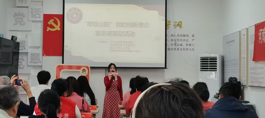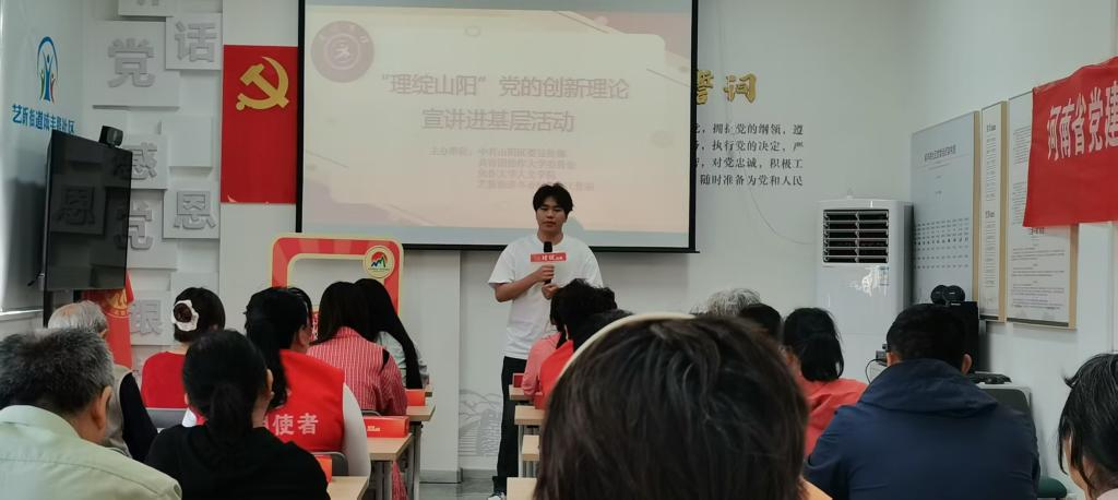 两年来,校团委、人文学院与山阳区委宣传部联合选拔球王会官网入口优秀大学生组成全市首支“校地联盟宣讲小分队”,深入社区(村),与群众面对面开展宣讲,推动党的创新理论飞入寻常百姓家,为切实打通基层理论宣讲的“最后一公里”做出积极贡献。