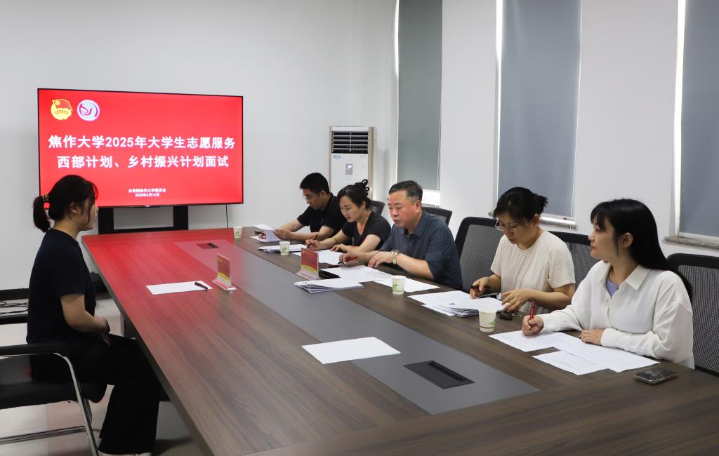 5月14日下午,校团委在行政楼3016室组织开展大学生志愿服务西部计划、河南省乡村振兴计划面试工作。校团委和教务处、学生处工作人员担任此次面试评委。